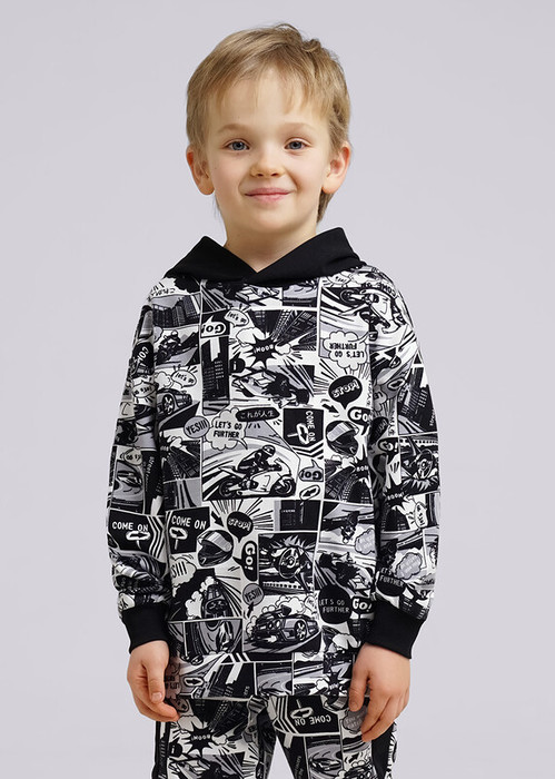 Принтованное худи в стиле комиксов сделает любой look дерзким и стильным! Его можно надеть с джинсами или спортивными джоггерами. Свободная посадка oversize, эластичные манжеты и пояс из кашкорсе.