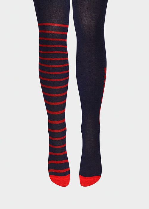 колготки для мальчика с разными рисунками на ножках, на одной ноге полоски, на второй надпись ""гонки"" ,