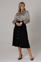 Комплект из текстильного полотна штапель-креп. Блузка свободного кроя. Втачной рукав. Отложной воротник спереди планка на пуговицах,накладной карман.Боковые разрезы.Брюки широкие. По талии пояс на резинке,с завязками. Боковые карманы в отрезном бочке.