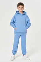 Комплект из футера - идеальная база для активного отдыха! Худи среднего объёма, низ рукава на резинке. Спереди минималистичный принт. Широкие брюки среднего объёма, эластичныйс пояс на резинке.