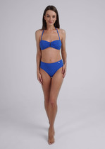 Костюм купальный женский однотонный из полиамида с эластаном. Лиф с круглыми чашечками, с декоративными складками спереди, на регулируемых бретелях. Трусы бикини на высокой посадке.