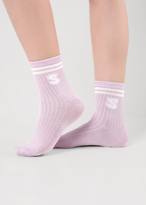 Носки для девочки в лапшу с полосками на паголенке и буквой S