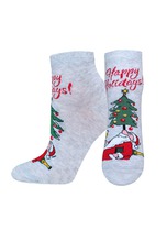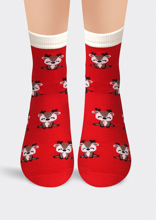 Новогодние женские носки (гладь) рисунок Олени,бортик и рисунок вывязан мягкой пушистой пряжей ""травка""