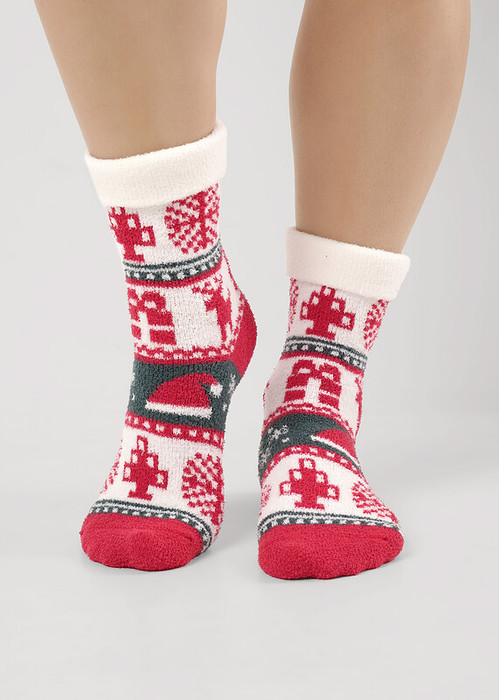 новогодние женские носки-сапожки из мягкой пряжи ""травка"" со скандинавским орнаментом