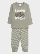 Новогодняя хлопковая пижама из джемпера и брюк. Горловина , манжеты по низу рукава и брюк из эластичного полотна. Лонгслив свободного кроя со спущенным плечом и крутым принтом.Брюки среднего объема, эластичный пояс обеспечит комфорт и идеальную посадку.