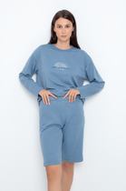 Комплект мужской состоящий из футболки и брюк. Футболка из фактурного трикотажного полотна с коротким рукавом, спереди авторский принт. Брюки из трикотажа на широком поясе с резинкой и регулируемым шнуром, по бокам удобные карманы.