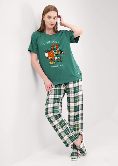 Совместные покупки Каменск-Уральский Женская одежда Пижамы, халаты — Clever Пижама женская CLE LP15-1199/3 т.зелёный/молочный