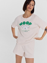Набор одежды для дома и отдыха из трикотажного полотна. Футболка прямого кроя, горловина с обтачкой. Короткий целькроенный рукав. Спереди накладной карман с принтом вспенка. Шорты с поясом на резинке и киперной лентой. Боковые карманы с отрезным бочком.