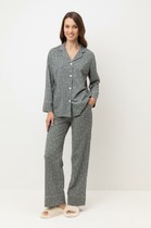 Пижама для дома из хлопкового трикотажного полотна с эластаном.Майка прямого силуэта, среднее плечо.По горловине и пройме окантовка с застилом, внизу нашивка.Короткие шорты с притачным поясом на внутренней резинке,спереди имитация гульфика с пуговицами.