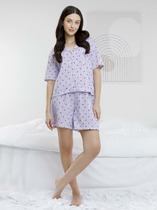 Пижама для дома из эластичного хлопкового полотна. Майка умеренного объема. Узкая бретель, округлая горловина,по горловине,пройме окантовка. Короткие шорты свободного кроя, цельнокроеный пояс на внутренней резинке. Спереди имитация гульфика.