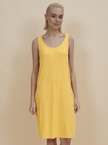 Платье свободного силуэта из хлопкового трикотажного полотна, длиной ниже колена. Короткий слегка спущенный рукав. По горловине обтачка с кружевом. По талии рез с присборенной юбкой. Боковые карманы с отрезным бочком. Спереди принт.