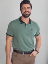Футболка поло из фактурного полотна ""пике"" с вязаными манжетами и воротником. Функциональная планка. Модель дополнена вышивкой и принтом. Отличное решение для встреч с друзьями.