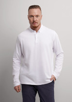 Футболка-поло мужское из хлопкового полотна с добавлением эластана, с воротником, функциональной планкой на пуговицы и карманом. Изделие выгодно подчеркивают лаконичная нашивка по низу изделия. Хорошее дополнение к брюкам или джинсам.