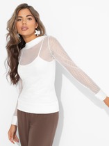 Блузка прямого силуэта из трикотажного полотна, с отложным воротником на стойке. Спереди цельнокроеная планка с застежкой на пуговицы. Длинный втачной рукав, внизу с притачной манжетой и застежкой на пуговицу. По спинке кокетка со складкой.