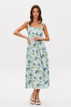 Сарафан из тканого полотна лен с вискозой,свободного кроя отрезной под линией груди со сборкой. Широкие бретели, квадратный вырез, длина миди.