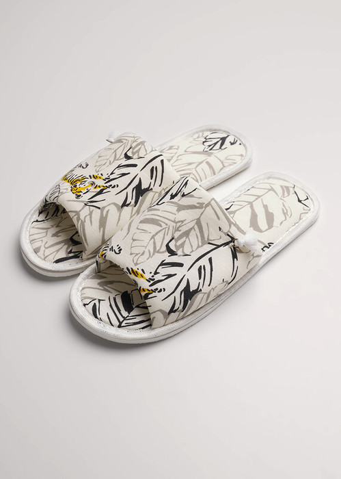 Лёгкие тапки для дома и отдыха с открытым носом из хлопкового трикотажного полотна, нашивка. Толстая подошва.