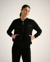 Куртка спортивная из трикотажного полотна велсофт, на молнии. По горловине стойка. Спереди карманы на молнии с закреплением мешковины. Длинный рукав со спущенной линией плеча, нашивка. По низу рукава и низа изделия окантовка.