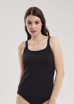 Майка топ укороченная из трикотажного полотна кашкорсе лапша с эластаном. Средняя ширина бретели. Округлый вырез горловины. По горловине, пройме окантовка. По низу изделия внутренняя резинка, по центру жаккардовая нашивка.