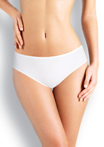 Бразилиана. Комбинированная модель с кружевной вставкой по верху переда и кружевной спинкой со средним швом. По поясу и ножке со стороны переда обработка резинкой с фестоном. На детали переда - небольшой атласный бант.