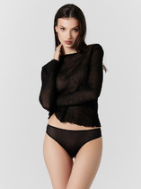 Классическая модель удобной посадки. Изделие комбинированное: перед - кружевное полотно, спинка - трикотаж. По ножкам - резинка с фестоном, по талии - отделкакружевом. На детали переда по центру - небольшой атласный бант.