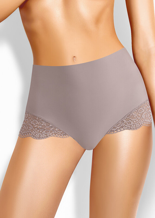 Бесшовные трусы макси комфортной посадки. По ножке настрочено широкое кружево.