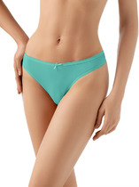 Трусы шорты женские из эластичного хлопкового полотна. Обработка краев по талии - окантовочная резинка, по ноге - подгибка. По переду атласный бант.