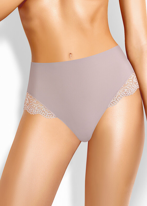 Бесшовные трусы стринги комфортной посадки. По бокам вставки из широкого кружева.