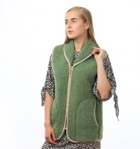 Жилет из трикотажного поливискозного полотна джерси, прямого кроя. Округлая горловина с обтачкой. По пройме подкройная обтачка. Спереди резы со шлицей и декоративными клапанами. По низу изделия потайной стежок.