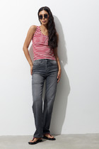 Джинсы mom в пепельном оттенке идеально подходят для расслабленного повседневного стиля. Модель поможет создать непринуждённые стильные луки, а её умеренно свободный силуэт прекрасно подчеркнёт фигуру.
