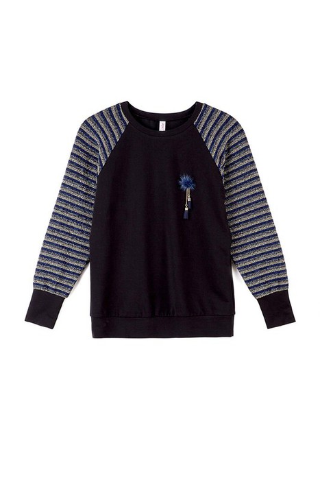 27.03 Vilatte Свободный бомбер с лампасами на молнии из петельчатого футера дву
