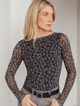 09.04 Vilatte Джемпер с прозрачными рукавами D29.278 серый-коричневый