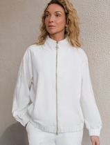 Свободный бомбер с лампасами на молнии из петельчатого футера двухнитки с эласта
