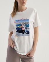 Базовая футболка с рисунком «Bonnes vacances» из мягкого хлопка сочетает в себе минимализм и оригинальные тенденции уличной моды.