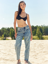 Джинсы mom с высокой посадкой подойдут девушкам с разными типами фигуры: благодаря высокой посадке, акцентным вытачкам по карманам, прилегающему крою в области бедер и слегка зауженным штанинам модель визуально моделирует силуэт.