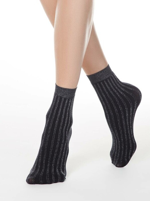 Совместные покупки Каменск-Уральский Женская одежда Носки — CONTE ELEGANT Полиамидные CONTE FANTASY Носки в полоску с люрексом 19С-25СП nero
