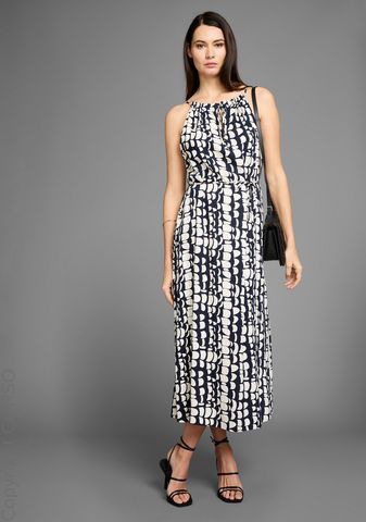Женственное платье миди с узором для элегантного образа, облегающий фигуру крой для максимального комфорта, вискозная ткань для приятных ощущений, завязки для регулировки размера, идеально подходит для торжественных случаев и элегантных вечеров, состав ткани: 100% вискоза, стандартный размер.