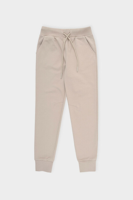 Трикотажные брюки из петельчатого футера. Эластичный пояс на резинке регулируется по ширине с помощью ленты, по бокам два удобных кармана, внизу эластичные манжеты.