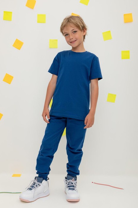 Трикотажные брюки из петельчатого футера. Эластичный пояс на резинке регулируется по ширине с помощью шнурка, по бокам два удобных кармана, внизу эластичные манжеты.