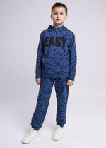 Трикотажные брюки для мальчика из петельчатого футера. Эластичный пояс на резинке регулируется по ширине с помощью шнурка, по бокам два удобных кармана, внизу эластичные манжеты.
