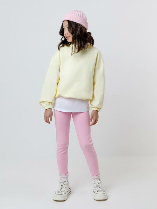 Длинные лосины для девочки из однотонного эластичного трикотажа. Цельнокроеный пояс с плоской резинкой внутри.