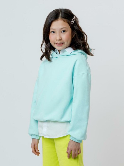 Худи с капюшоном для девочки из однотонного петельчатого футера. Манжеты и пояс на резинке.