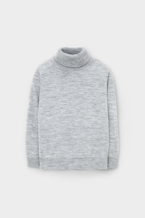 Вязаный джемпер для мальчика из полушерстяной пряжи. Высокий воротник с отворотом хорошо защищает от холода.  Длинные рукава с манжетами. Внизу эластичный пояс. Изделие сохраняет форму и стойкий цвет после многочисленных стирок.
