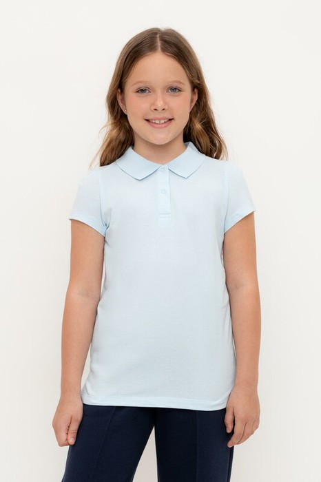 Поло для девочки из высококачественного трикотажного полотна пике. У изделия вязаный воротник и застежка спереди на пуговицы.