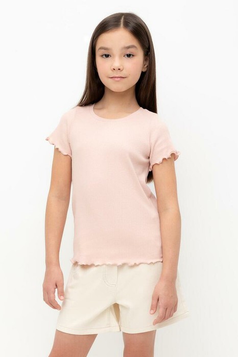 Футболка для девочки из эластичного трикотажа в рубчик. Изделие сохраняет цвет и форму после многократных стирок.