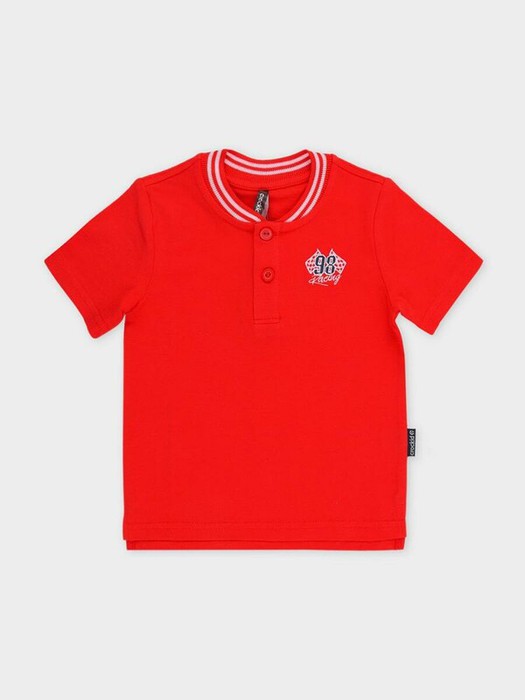 Поло с вышивкой для мальчика. Изготовлено из высококачественного трикотажного полотна пике. У изделия вязаный воротник и застежка спереди на две пуговицы.