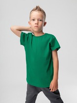 Однотонная футболка для мальчика из высококачественного трикотажного полотна. Для удобства одевания в размерах 92 и 98 застёгивается на спинке с помощью кнопок.