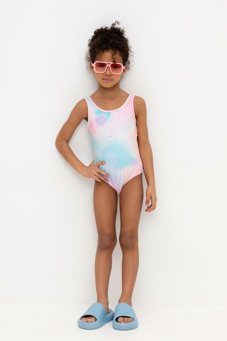 Слитный купальник на лямках для девочки. Оригинальная набивка выполнен из стойких гипоаллергенных красителей.