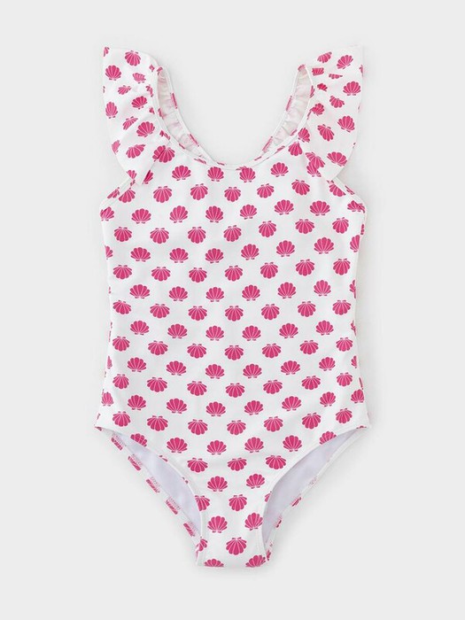 Слитный купальник на бретелях для девочки. Украшен оборками. Внутри подклад. Оригинальная набивка выполнена из стойких гипоаллергенных красителей.