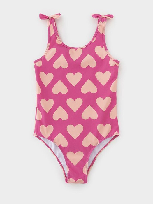 Слитный купальник на лямках для девочки. Украшен декоративными бантиками на лямках. Внутри подклад. Оригинальная набивка выполнена из стойких гипоаллергенных красителей.