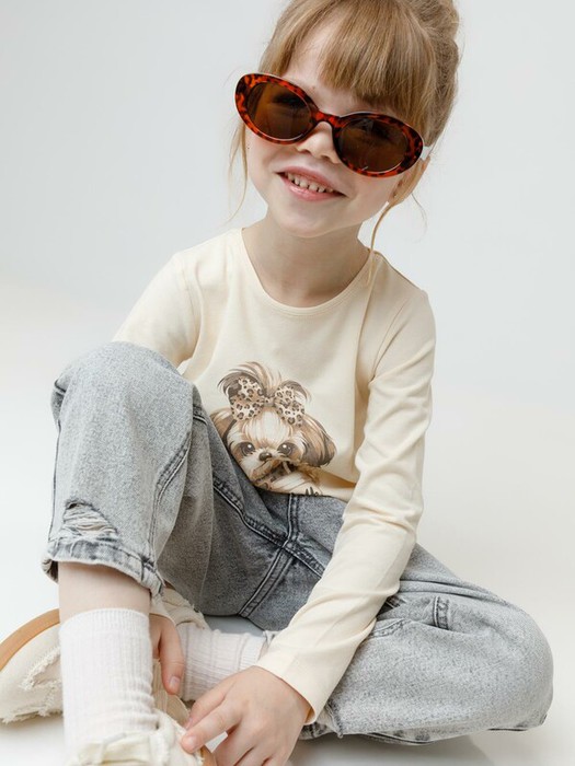 Лонгслив для девочки из гладкого эластичного трикотажа. Оригинальный принт выполнен из стойких текстильных гипоаллергенных красителей. Изделие сохраняет цвет и форму после многократных стирок. Все трикотажные полотна производятся в соответствии с нормами швейцарского сертификата ЭкоТекс.